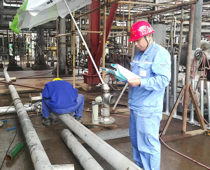 减压装置改造建设以来,他每天都是早出晚归。最近天气闷热,尤其是午后的热浪更是让人受不了,他的脸部早已被火辣的太阳晒得通红,汗水不停地从额头上渗出,衣衫湿透了,他用衣袖擦了擦脸上的汗水,继续奋战,为持续推进工作经常加班加点。装置建设期间,面对施工面广,监护人手不足等困难,他科学合理统筹班组监护人力配备。